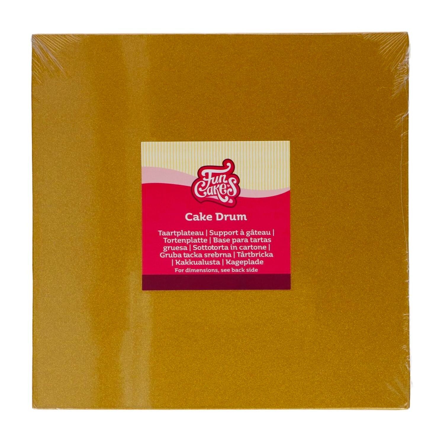 CAKE DRUM CUADRADO DORADO BRILLANTE FUNCAKES - 30 CM